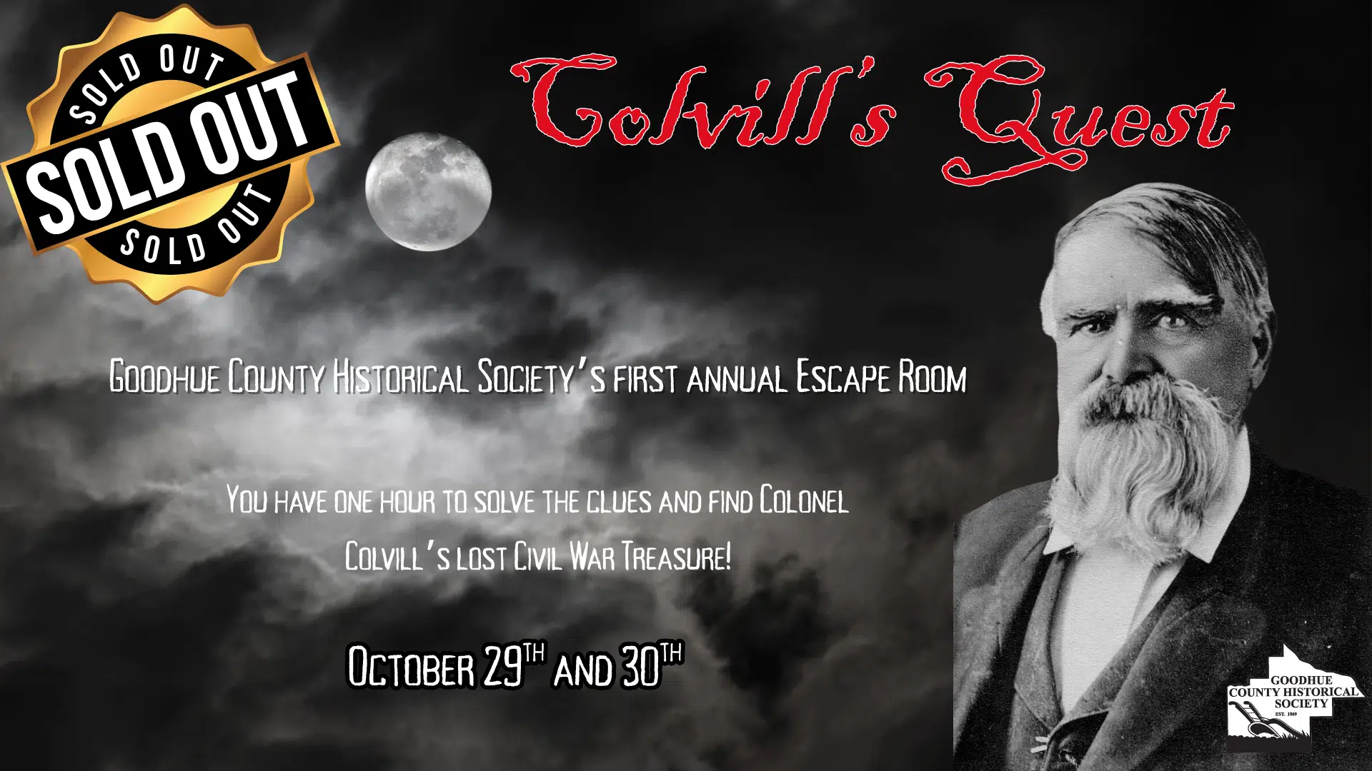 Escape Room: Colvill’s Quest- SOLD OUT Oct 29 5:00 pm - 9:00 pm Escape Room: Colvill’s Quest- SOLD OUT $20